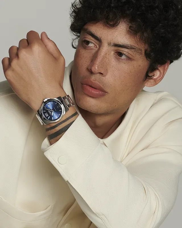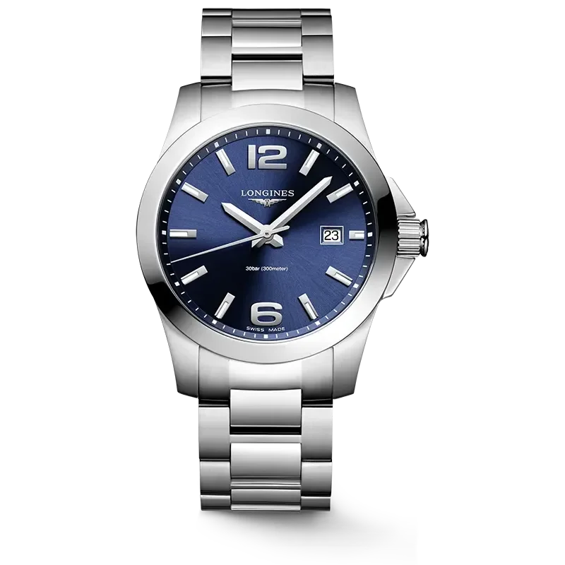 Sporty blå favoritt – Conquest L37594966 kombinerer en dyp blå sunray-skive med klassisk stålkasse og lenke. Resultatet er en moderne sportsmodell som skiller seg ut, men fortsatt er lett å bruke hver dag.