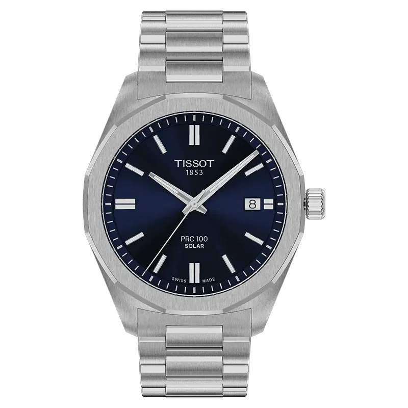 Solcelledrevet PRC 100 – denne modellen kombinerer en 39 mm stålkasse med en kraftfull blå skive og dodekagonal bezel. Designet er hentet fra den originale PRC 100, men oppdatert med Lightmaster Solar Quartz-teknologi som lader urverket med lys.