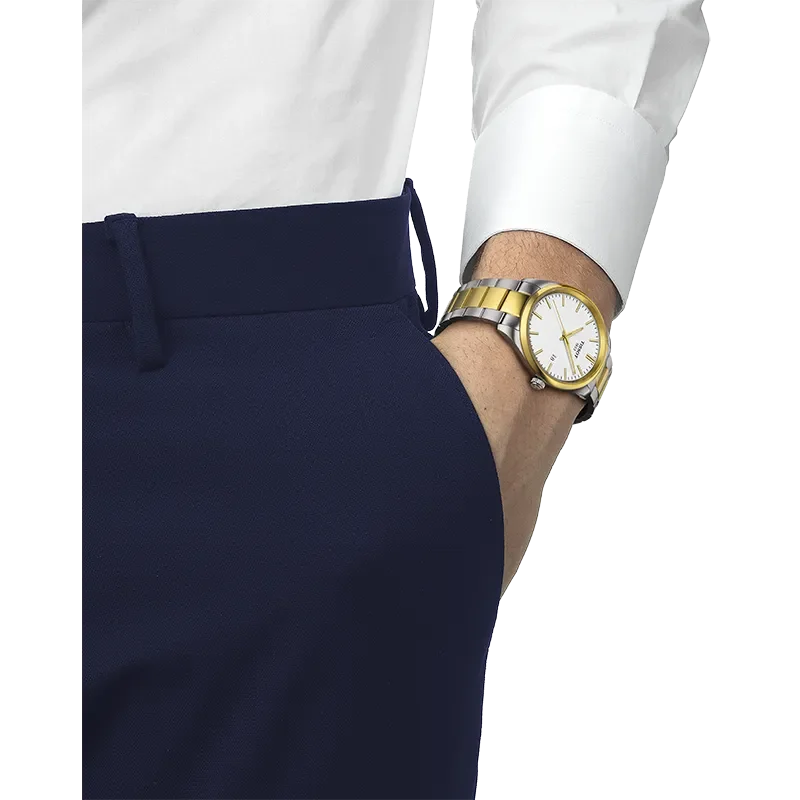 Tissot T1504102201100 er et elegant og moderne herreur som kombinerer klassisk stil med pålitelighet. Med en kasse på 40 mm har dette uret en behagelig størrelse som passer godt til mange håndledd, og den hvite urskiven gir et tidløst uttrykk som passer både til hverdagsbruk og mer formelle anledninger.