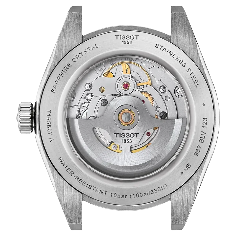 Tissot T1658071103100 kombinerer tradisjonelt sveitsisk håndverk med moderne design. Denne mekaniske og automatiske herreklokken har en klassisk sølvfarget kasse som måler 38 mm, noe som gir en balansert og tidløs estetikk. Glassfronten er av slitesterkt safirglass, som beskytter urskiven effektivt mot riper og slitasje.
